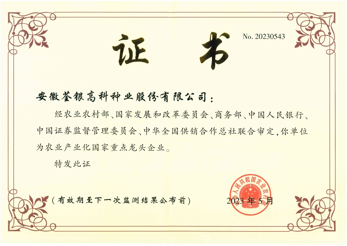 2024年07月安徽荃銀高科種業(yè)股份有限公司是一家“以種業(yè)為核心、農(nóng)業(yè)服務(wù)為延伸、探索和創(chuàng)新農(nóng)業(yè)多元化發(fā)展”的現(xiàn)代高科技種業(yè)上市公司,證券代碼:300087。公司注冊(cè)資金9.47億元,系“中國(guó)種業(yè)領(lǐng)軍企業(yè)、農(nóng)業(yè)產(chǎn)業(yè)化國(guó)家重點(diǎn)龍頭企業(yè)、國(guó)家高新技術(shù)企業(yè)、農(nóng)業(yè)部首批農(nóng)作物種子育繁推一體化企業(yè)、中國(guó)種業(yè)信用明星企業(yè)"。在國(guó)內(nèi)控股子公司20多家,在國(guó)外設(shè)立分支機(jī)構(gòu)4家,良種銷(xiāo)售至全國(guó)20多個(gè)?。ㄊ小^(qū)),出口覆蓋20多個(gè)國(guó)家與地區(qū),種業(yè)綜合實(shí)力、雜交水稻研發(fā)、推廣及海外業(yè)務(wù)規(guī)模均居全國(guó)種子企業(yè)前2位。