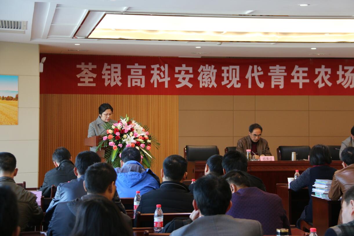 2017年3月27日上午,荃銀高科安徽現(xiàn)代青年農場主2016級培訓班開班儀式在肥舉行。合肥市農委主任夏倫平、共青團安徽省委農村工作部副部長陳永剛、安徽農業(yè)大學農學院黨委副書記鄢高翔、荃銀高科董事長張琴等領導出席開班儀式。來自合肥、滁州、馬鞍山、六安、銅陵、池州、蕪湖、宣城、黃山、安慶等地從事種植業(yè)的84名青年農場主參加了培訓。開班儀式由安徽省農委科教處副處長程世根主持。