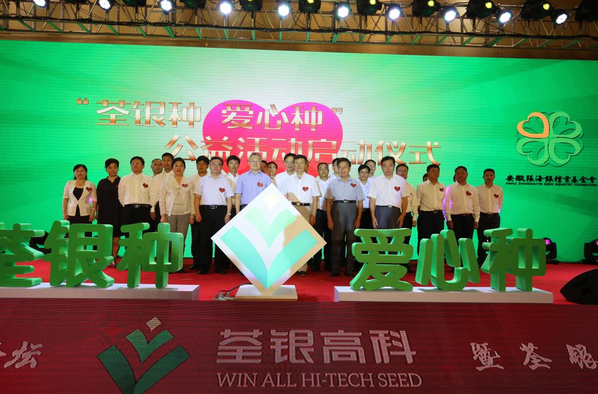 農(nóng)業(yè)部種子管理局張延秋局長、中國種子協(xié)會蔣協(xié)新副會長、中科院韓斌院士、安徽省農(nóng)委朱永東副主任、基金會張海銀理事長、荃銀高科張琴董事長,以及荃銀高科經(jīng)營班子成員、所屬控股子(分)公司負(fù)責(zé)人共同見證并將愛心種子放入愛心池,“荃銀種、愛心種”的公益活動(dòng)正式啟動(dòng)。