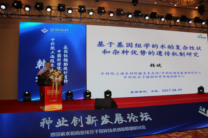 創(chuàng)新驅(qū)動(dòng),助力發(fā)展。2 9日下午,荃銀高科舉行種業(yè)創(chuàng)新發(fā)展論壇暨國家水稻商業(yè)化分子育種技術(shù)創(chuàng)新聯(lián)盟研討會,中國科學(xué)院院士、中科院上海植生生態(tài)所所長韓斌,北京市農(nóng)林科學(xué)院玉米研究中心主任趙久然分別就“基因組輔助設(shè)計(jì)育種”和“玉米科研及產(chǎn)業(yè)發(fā)展方向”作了報(bào)告。荃銀高科副總經(jīng)理張從合進(jìn)行了“荃銀高科15周年科研成果及產(chǎn)業(yè)發(fā)展”情況匯報(bào)。
