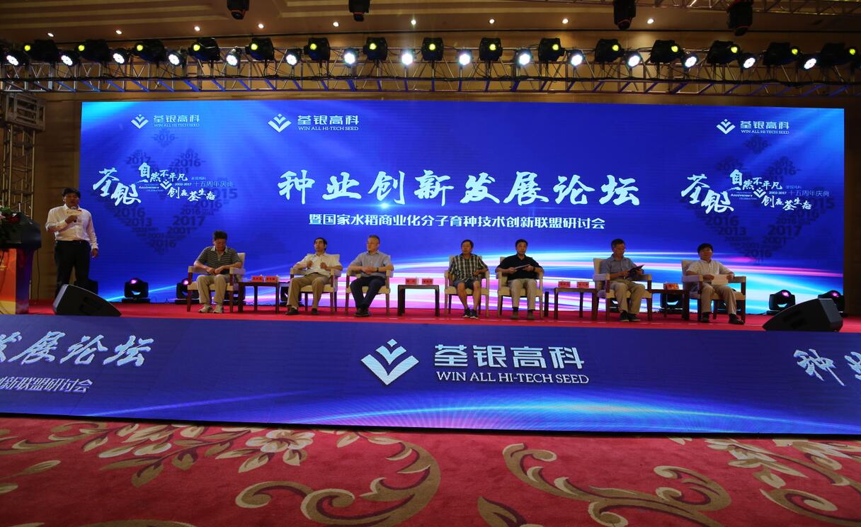 十五載風(fēng)雨兼程,十五載春華秋實(shí)!2017年8月29日,科企合作戰(zhàn)略簽約儀式·種業(yè)創(chuàng)新發(fā)展論壇暨荃銀高科成立15周年慶典大會在合肥隆重舉行。農(nóng)業(yè)部種子局局長張延秋,農(nóng)業(yè)部科教司司長廖西元,中國科學(xué)院院士、國家基因研究中心主任、上海植生生態(tài)所所長韓斌,中國種子協(xié)會副會長兼秘書長蔣協(xié)新,安徽省科技廳廳長宛曉春,安徽省農(nóng)業(yè)委員會副主任周世其、朱永東,“中國種業(yè)十大功勛人物”、荃銀高科創(chuàng)始人、安徽張海銀基金會理事長張海銀先生,以及來自農(nóng)業(yè)部、中國種子協(xié)會和省、市有關(guān)部門的領(lǐng)導(dǎo)、專家、嘉賓,國家水稻商業(yè)化分子育種技術(shù)創(chuàng)新聯(lián)盟的科學(xué)家,戰(zhàn)略合作簽協(xié)單位代表,種業(yè)界同仁,還有來自印度尼西亞、孟加拉、巴基斯坦、越南等國家的20多位外賓朋友,計(jì)500多人參加了此次活動(dòng)。
