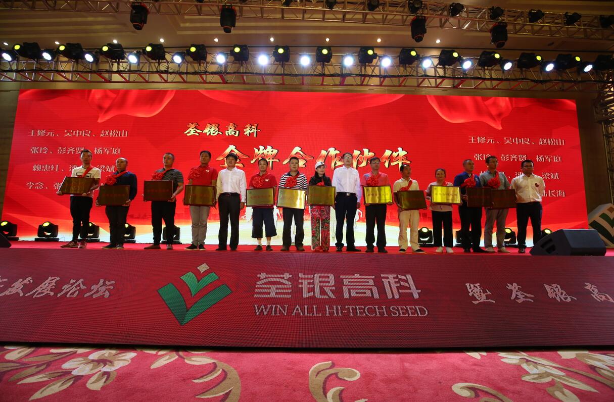 同舟共濟(jì)十五載,攜手同行創(chuàng)未來。會上,還頒發(fā)了基金會“荃銀種業(yè)促進(jìn)獎(jiǎng)”專項(xiàng)獎(jiǎng)、“荃銀高科金牌合作伙伴”、“荃銀高科科研團(tuán)隊(duì)突出貢獻(xiàn)獎(jiǎng)”、“荃銀高科忠誠員工獎(jiǎng)”等,獎(jiǎng)勵(lì)在農(nóng)作物種子科研、生產(chǎn)、推廣、管理和服務(wù)等方面開拓創(chuàng)新做出突出貢獻(xiàn)的優(yōu)秀種業(yè)工作者,以及支持荃銀高科發(fā)展的合作伙伴、優(yōu)秀團(tuán)隊(duì)及忠誠員工。
