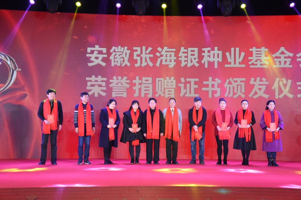 會(huì)上,對(duì)荃銀高科總部及子公司2017年度先進(jìn)集體、先進(jìn)個(gè)人進(jìn)行了表彰獎(jiǎng)勵(lì);進(jìn)行了安徽張海銀種業(yè)基金會(huì)頒發(fā)捐贈(zèng)證書儀式。