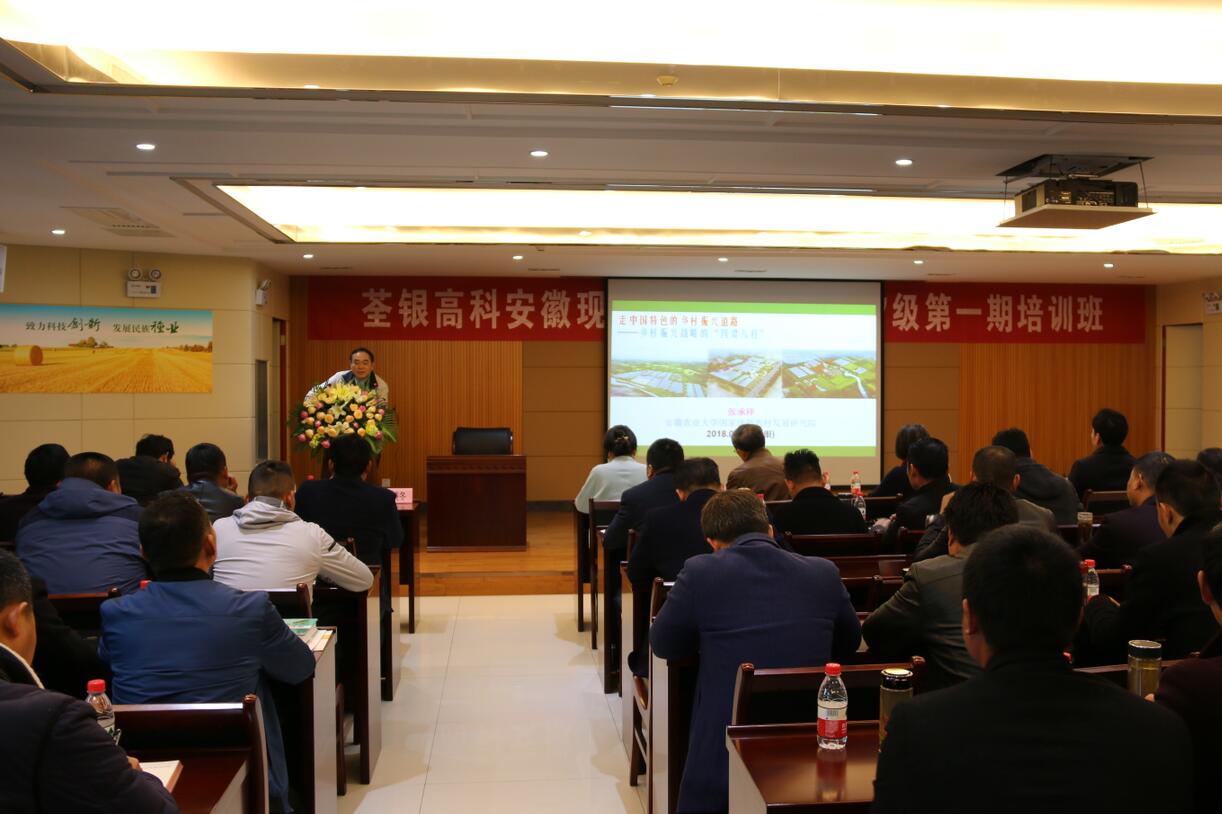 ? ? 本次培訓(xùn)班由安徽省農(nóng)委主辦、荃銀高科承辦,集中培訓(xùn)時(shí)間為3月18日至22日,主要培訓(xùn)課程有水稻規(guī)模生產(chǎn)管理技術(shù)、水稻育種及品種選用、社會化服務(wù)組織對接、小麥規(guī)模生產(chǎn)管理技術(shù)、新型職業(yè)農(nóng)民職業(yè)素養(yǎng)、現(xiàn)代農(nóng)業(yè)創(chuàng)業(yè)等。3月18日上午,安徽農(nóng)業(yè)大學(xué)新農(nóng)村發(fā)展研究院張承祥教授為學(xué)員開講“鄉(xiāng)村振興戰(zhàn)略”主題課。在學(xué)習(xí)培訓(xùn)期間,除了理論課程,農(nóng)場主學(xué)員們將于3月20日赴廬江郭河現(xiàn)代農(nóng)業(yè)科技示范園進(jìn)行參觀學(xué)習(xí),開展實(shí)踐教學(xué)活動(dòng)。