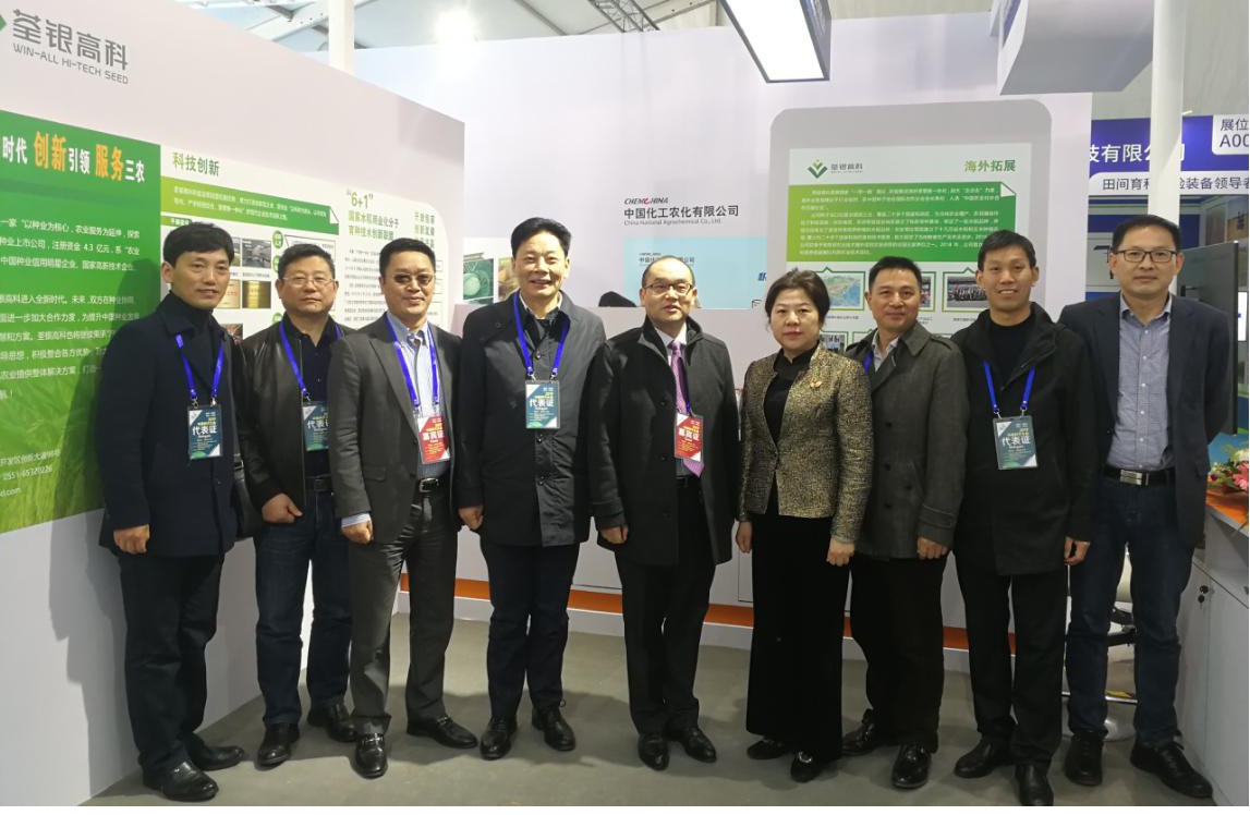 ??? 中化農(nóng)業(yè)總裁、荃銀高科董事長覃衡德先生,“中國種業(yè)十大功勛人物”、公司創(chuàng)始人張海銀先生等領(lǐng)導(dǎo)、專家蒞臨荃銀高科展廳巡展。