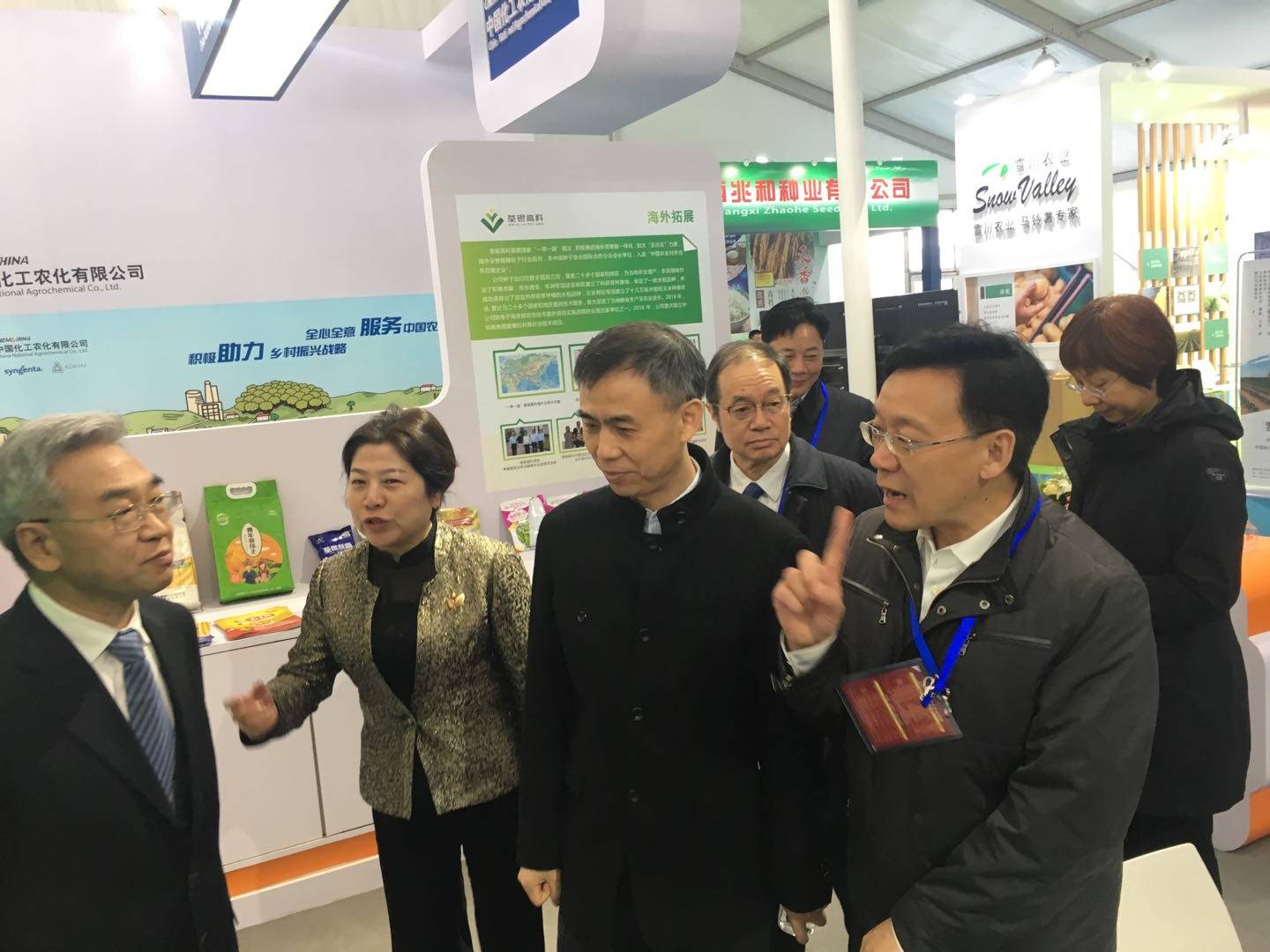 ??? 開幕式后,張?zhí)伊指辈块L參觀了“種子力量——新中國成立70周年與改革開放40年中國種業(yè)成就展”以及企業(yè)展廳。農(nóng)業(yè)農(nóng)村部科技教育司司長廖西元、種業(yè)管理司副司長周云龍、種業(yè)管理司副司長吳曉玲、中國種子協(xié)會副會長鄧光聯(lián)等領(lǐng)導(dǎo)陪同巡展。