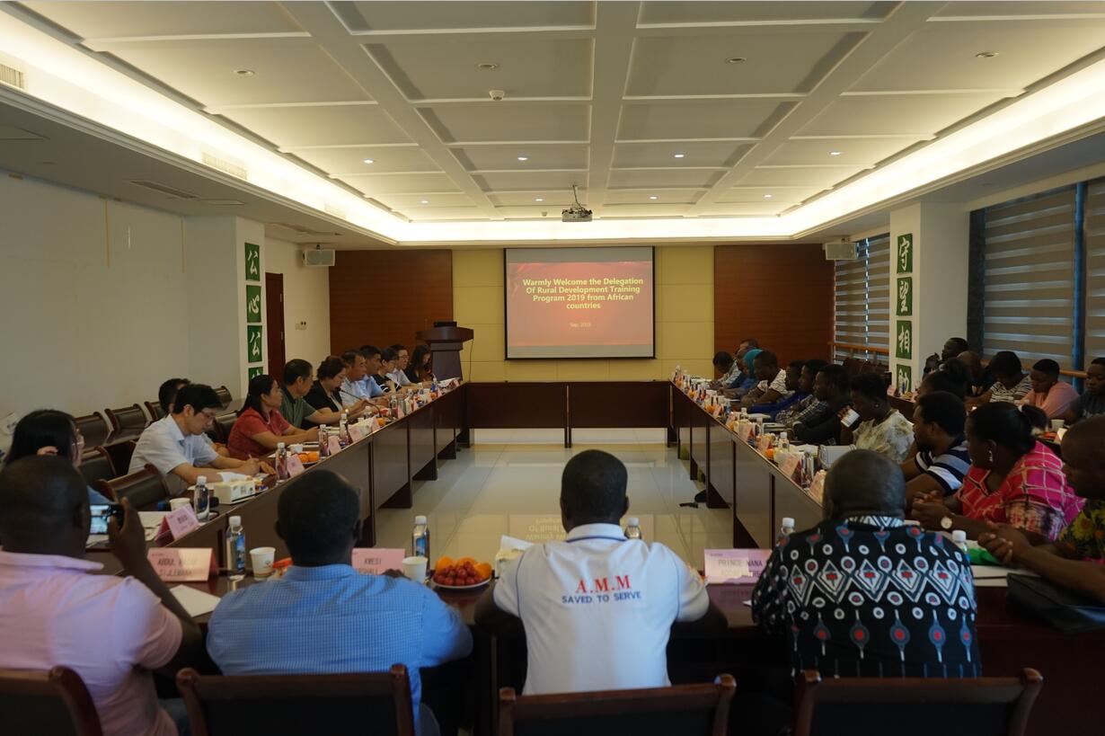 ??? 9月19日,商務(wù)部主辦、農(nóng)業(yè)農(nóng)村部管理干部學(xué)院組織“2019年非洲英語(yǔ)國(guó)家農(nóng)村發(fā)展研修班”蒞臨荃銀高科調(diào)研座談。農(nóng)業(yè)農(nóng)村部管理干部學(xué)院對(duì)外培訓(xùn)交流部主任望益群,安徽省農(nóng)業(yè)委員會(huì)外事外經(jīng)處調(diào)研員閆玉玲,合肥市農(nóng)業(yè)委員會(huì)外事外經(jīng)處處長(zhǎng)吳正東等陪同調(diào)研。荃銀高科副董事長(zhǎng)、總經(jīng)理張琴,工會(huì)主席兼辦公室主任鄭滿生,荃銀科技副總經(jīng)理金毅、總經(jīng)理助理丁松等參加了座談會(huì)。