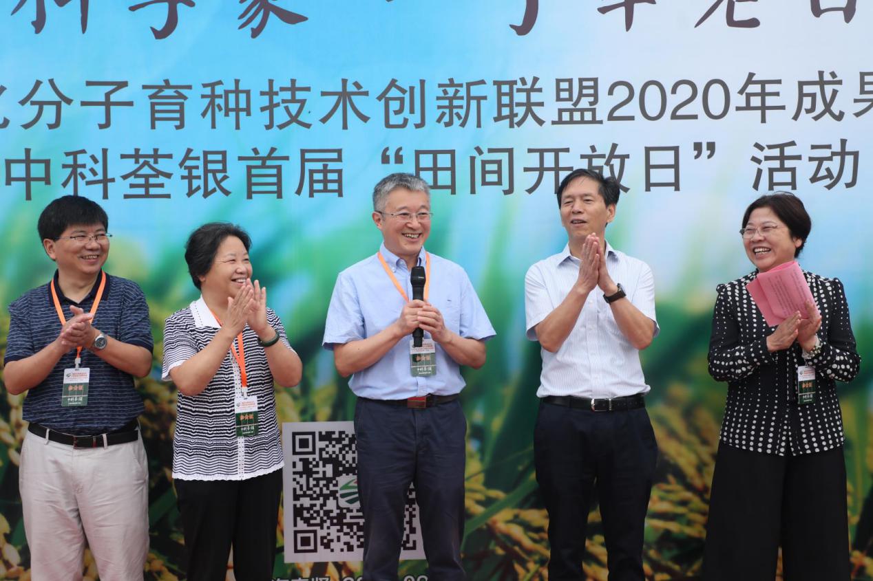 種業(yè)是現(xiàn)代農(nóng)業(yè)的“芯片”,是保障國(guó)家糧食安全端牢中國(guó)飯碗的源頭。在國(guó)家“十四五”規(guī)劃布局之年,全面打贏脫貧攻堅(jiān)戰(zhàn)收官之年,特別是在受新冠疫情影響人民群眾高度關(guān)注糧食安全之年,“6+1”國(guó)家水稻商業(yè)化分子育種技術(shù)創(chuàng)新聯(lián)盟2020 年成果展示會(huì)暨中科荃銀首屆“田間開放日”活動(dòng)于9月12日在上海召開。6+1國(guó)家聯(lián)盟首席科學(xué)家、中科院分子植物科學(xué)卓越創(chuàng)新中心主任韓斌院士,中國(guó)種子協(xié)會(huì)副會(huì)長(zhǎng)馬淑萍,上海市農(nóng)業(yè)農(nóng)村委一級(jí)巡視員王國(guó)忠等來自全國(guó)各地的領(lǐng)導(dǎo)、專家和企業(yè)家近百人出席,6+1國(guó)家聯(lián)盟理事長(zhǎng)、荃銀高科副董事長(zhǎng)、總經(jīng)理張琴女士主持本次活動(dòng)。